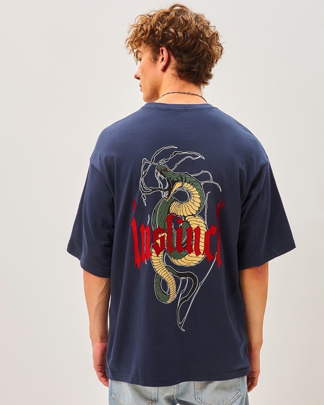 Men's Blue Instinct Graphic Printed Oversized T-shirt