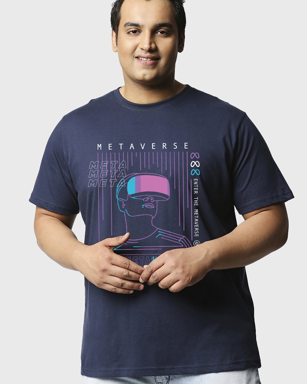 Men's Blue Metaverse Graphic Printed Plus Size T-shirt