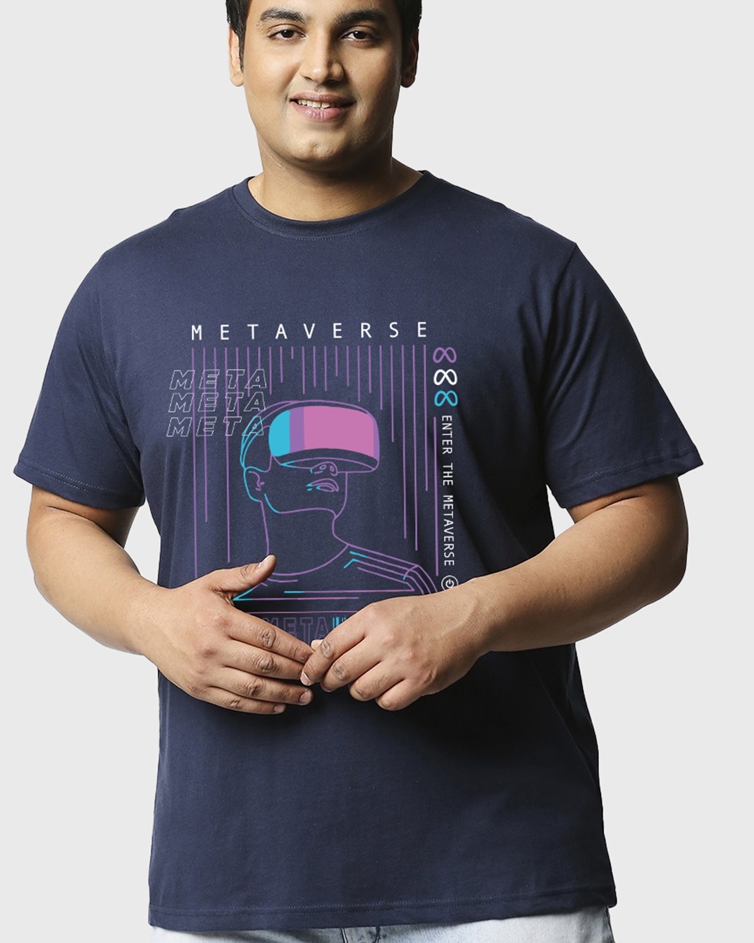 Men's Blue Metaverse Graphic Printed Plus Size T-shirt