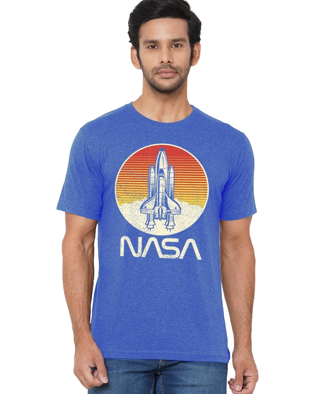 Men's Blue Nasa Retro Lift Off NASA Graphic Printed T-shirt