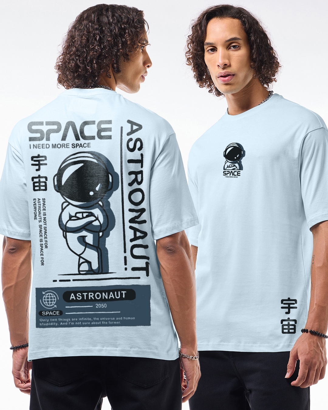 Men's Blue Need More Space Graphic Printed Oversized T-shirt