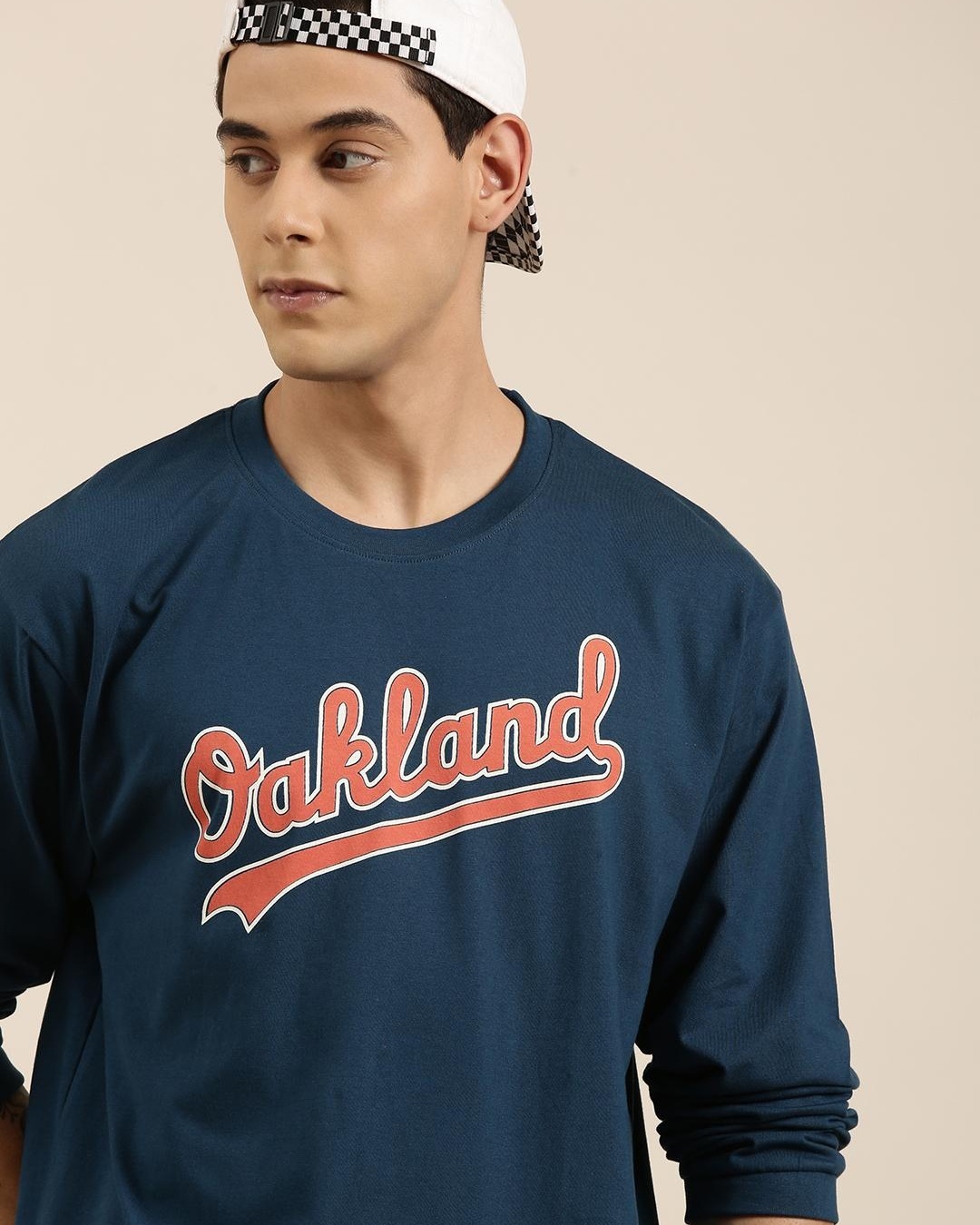Men's Blue Oakland Typography Oversized T-shirt