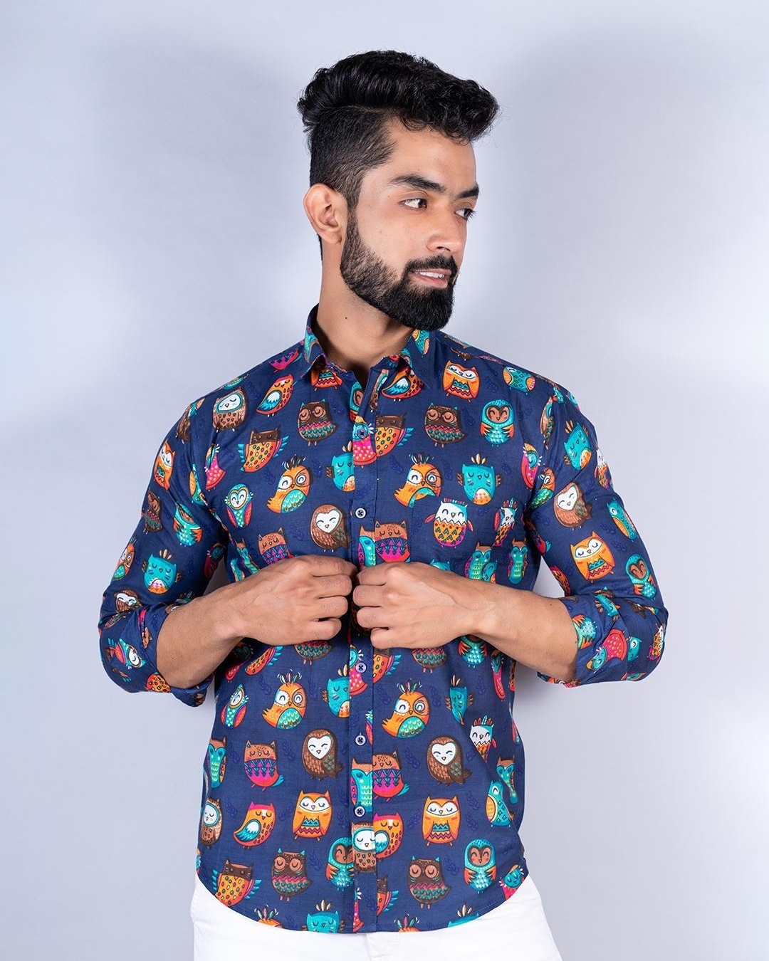 Men's Blue Owl Printed Relaxed Fit Shirt
