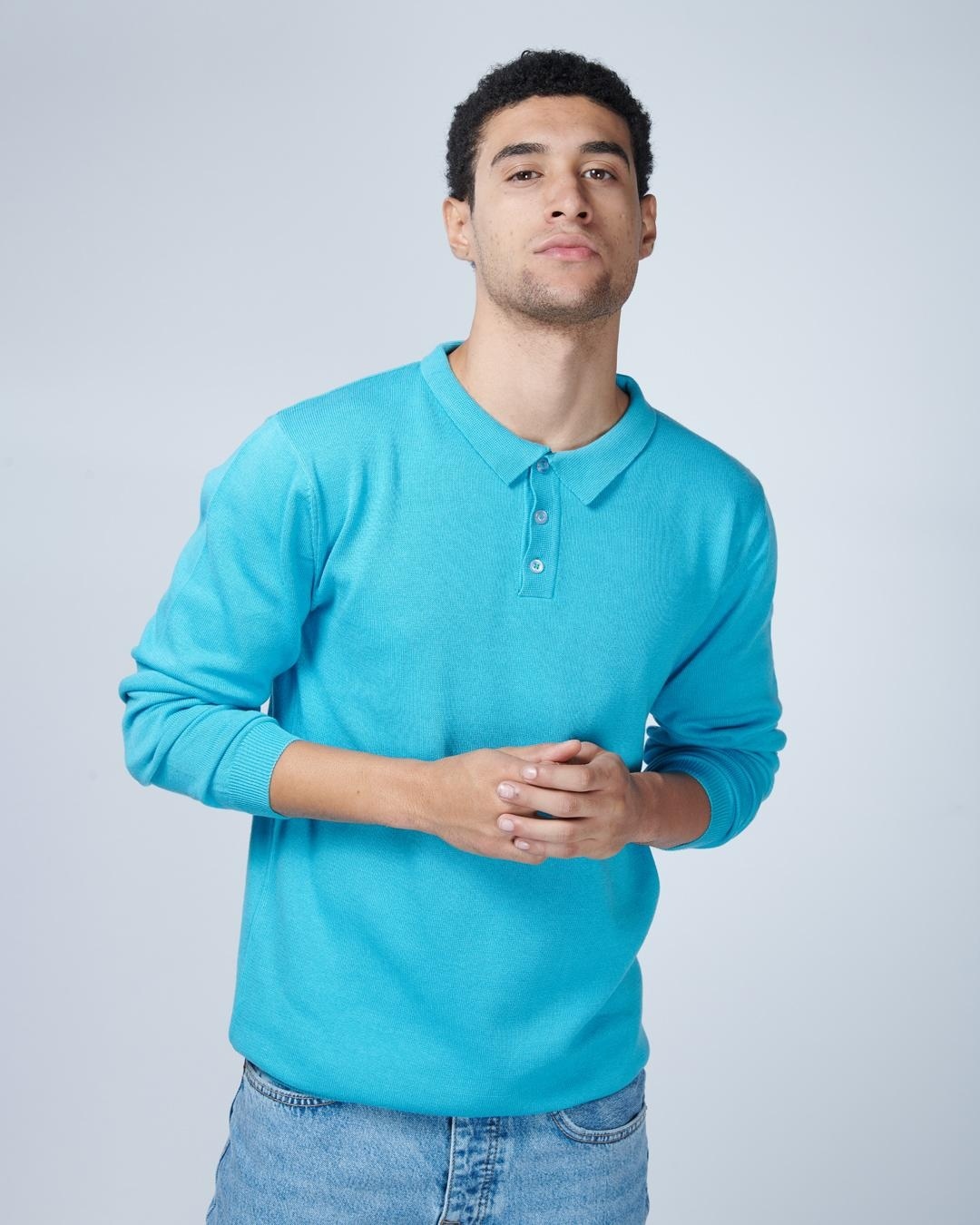 Men's Blue Arctic Knit Polo Sweater