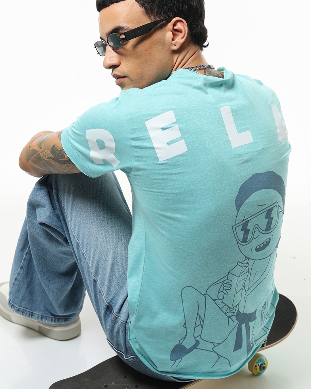 Men's Blue Relax Mode Graphic Printed T-shirt
