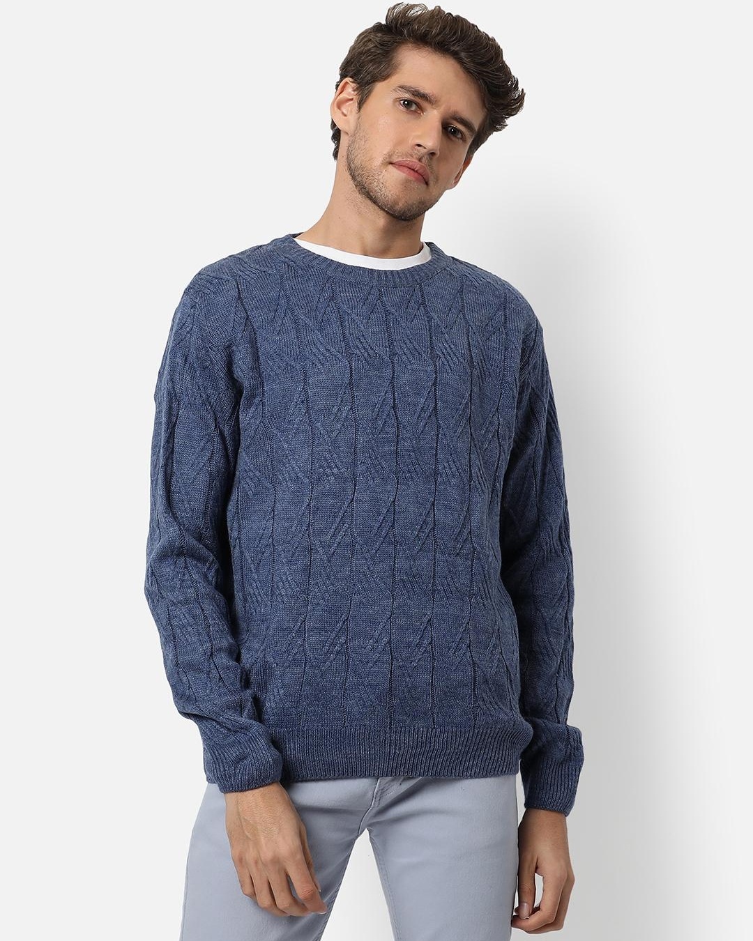 Men's Blue Self Designed Sweater