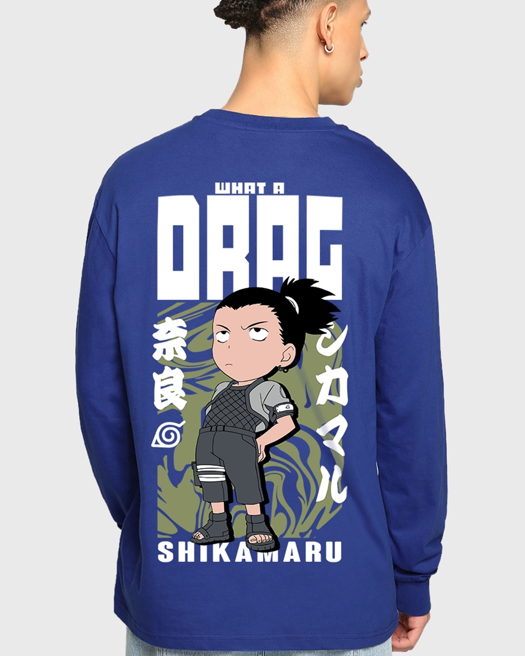 Men's Blue Shikamaru What a Drag Graphic Printed Oversized T-shirt