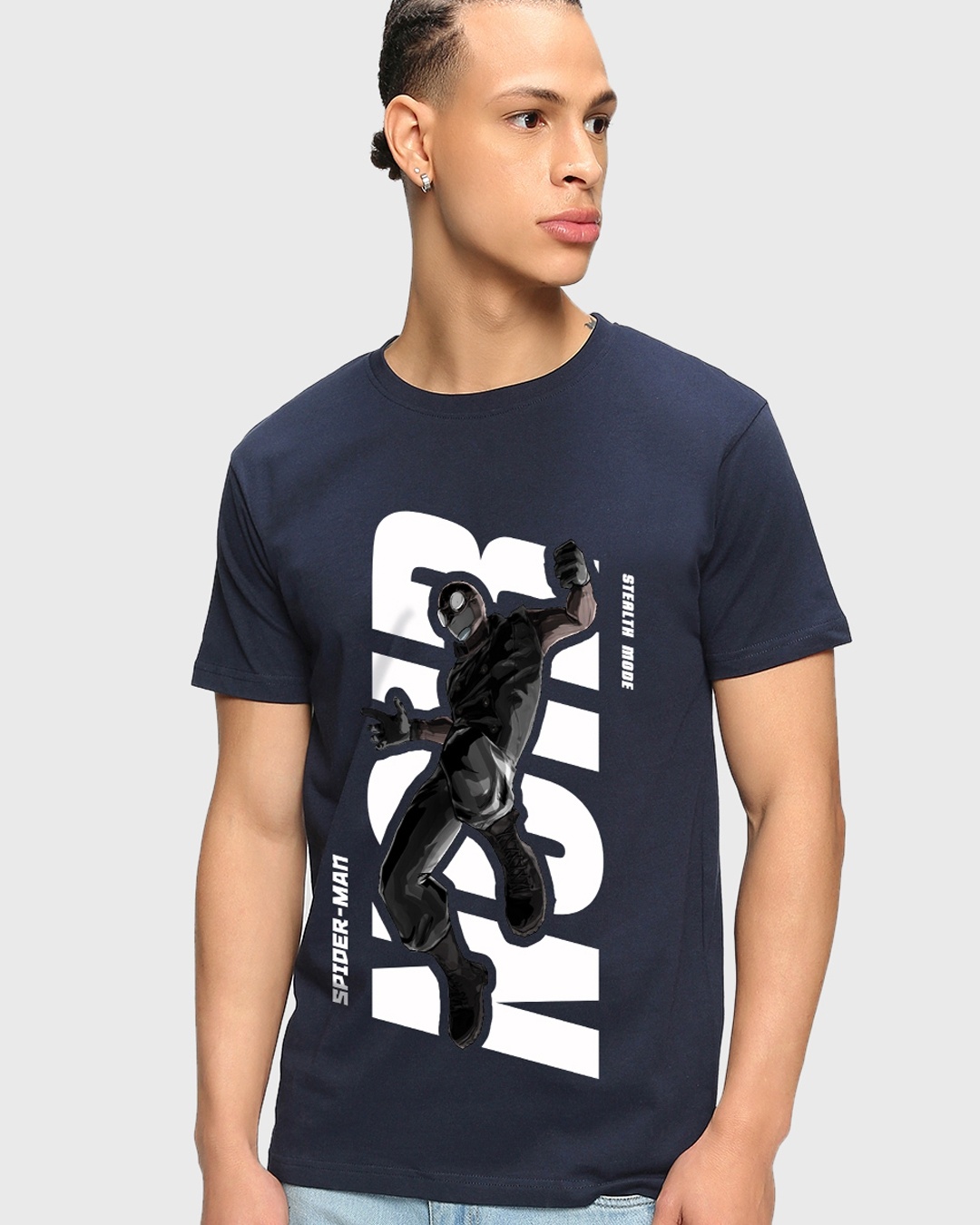 Men's Blue Spiderman Noir Graphic Printed T-shirt