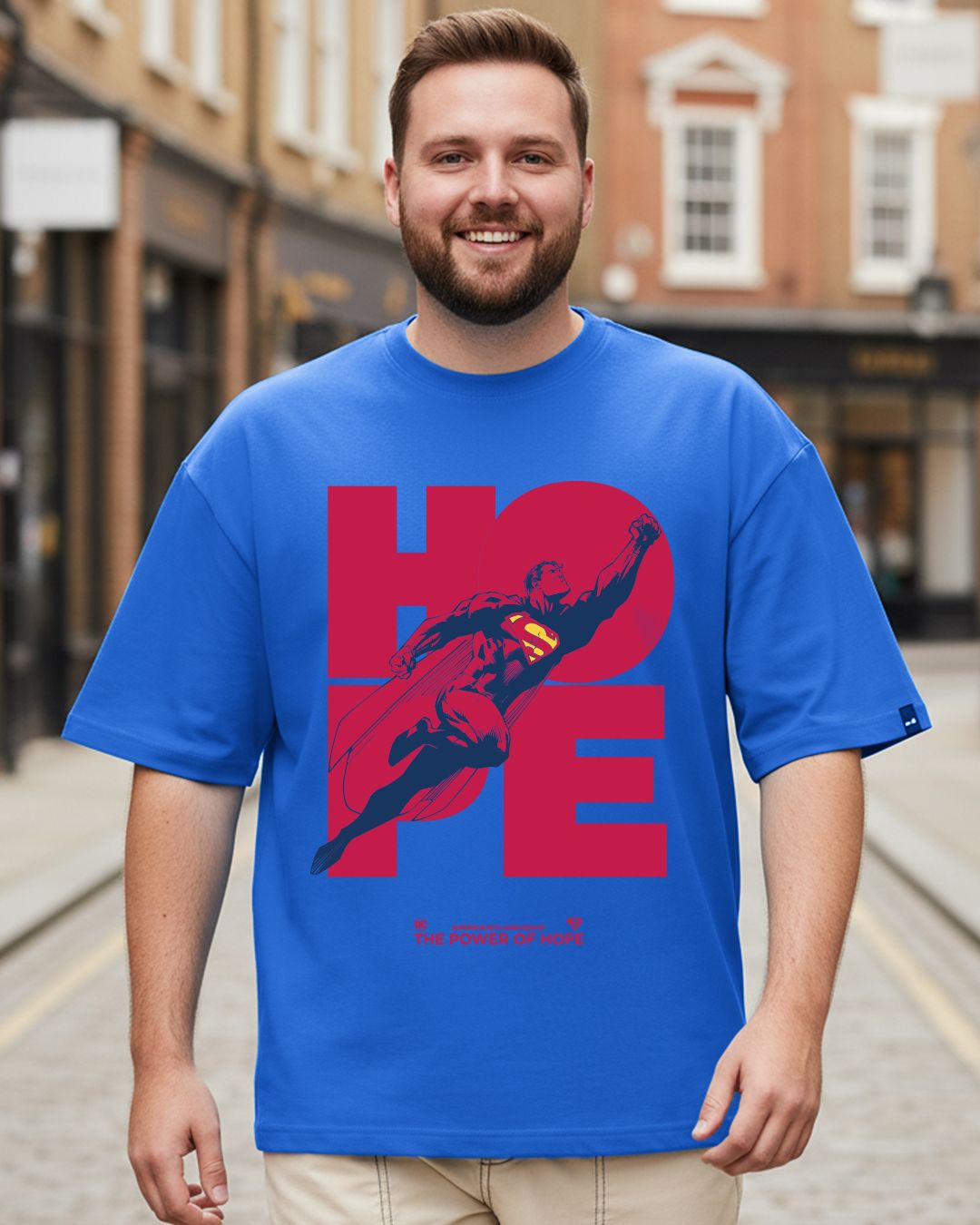 Men's Blue Superman Graphic Printed Oversized Plus Size T-shirt