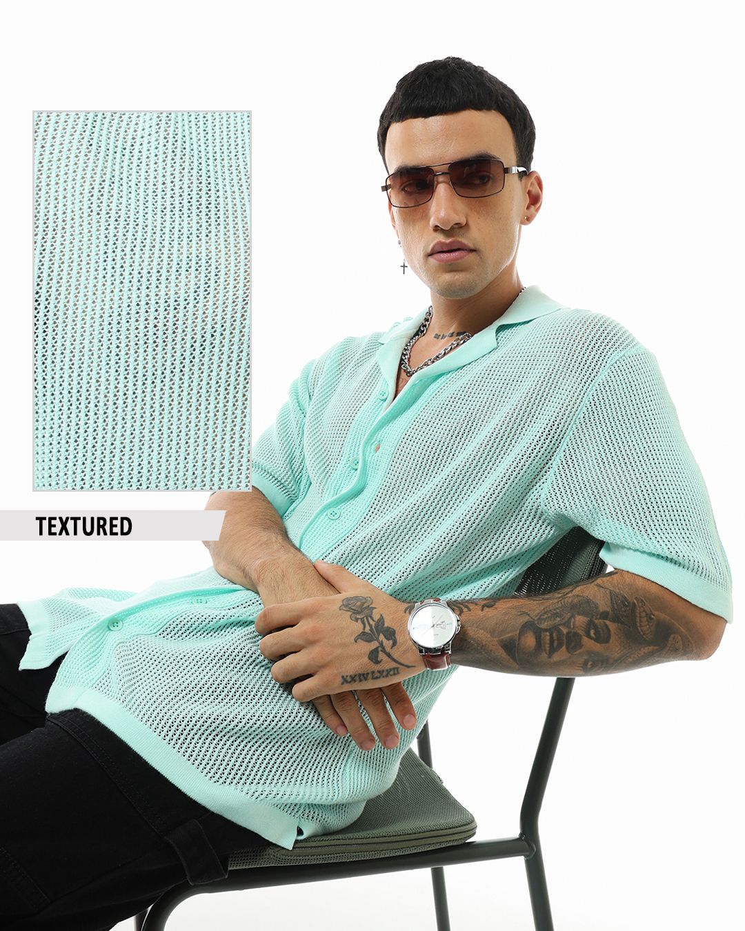 Men's Blue Textured Oversized Shirt