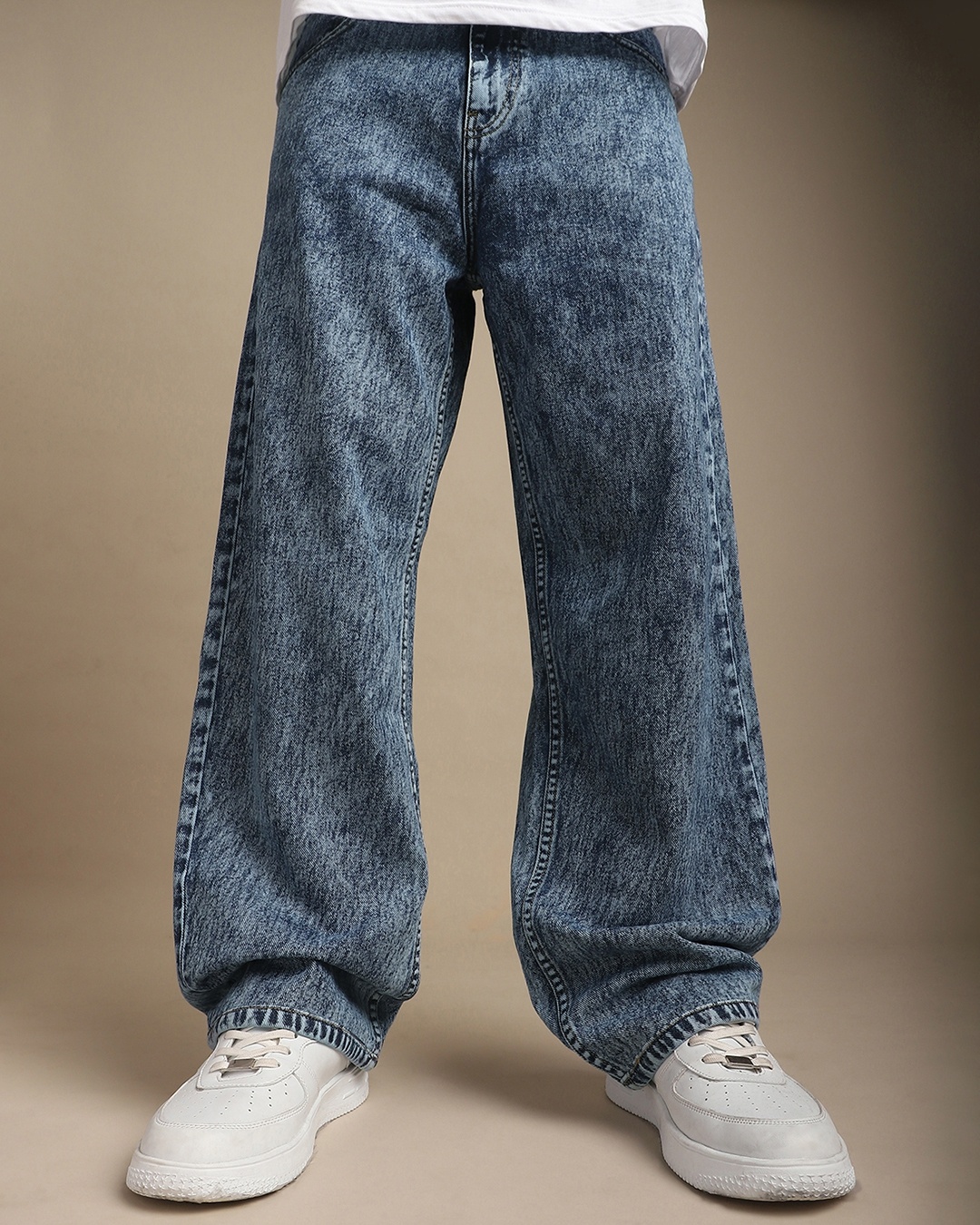 Men's Blue Washed Baggy Relaxed Fit Jeans
