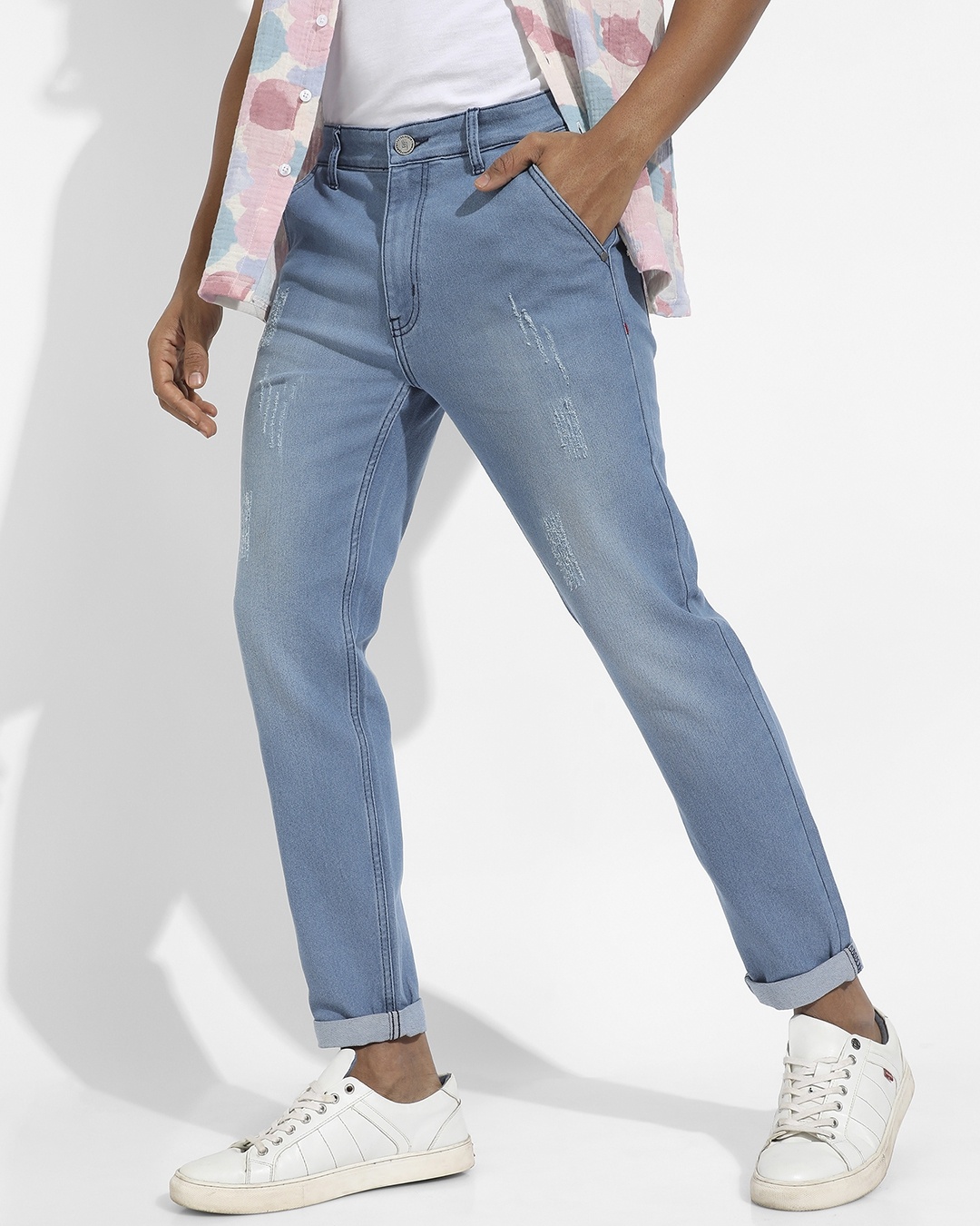 Men's Blue Washed Distressed Jeans