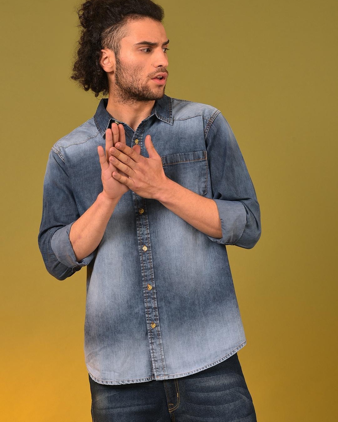 Men's Blue Washed Denim Shirt