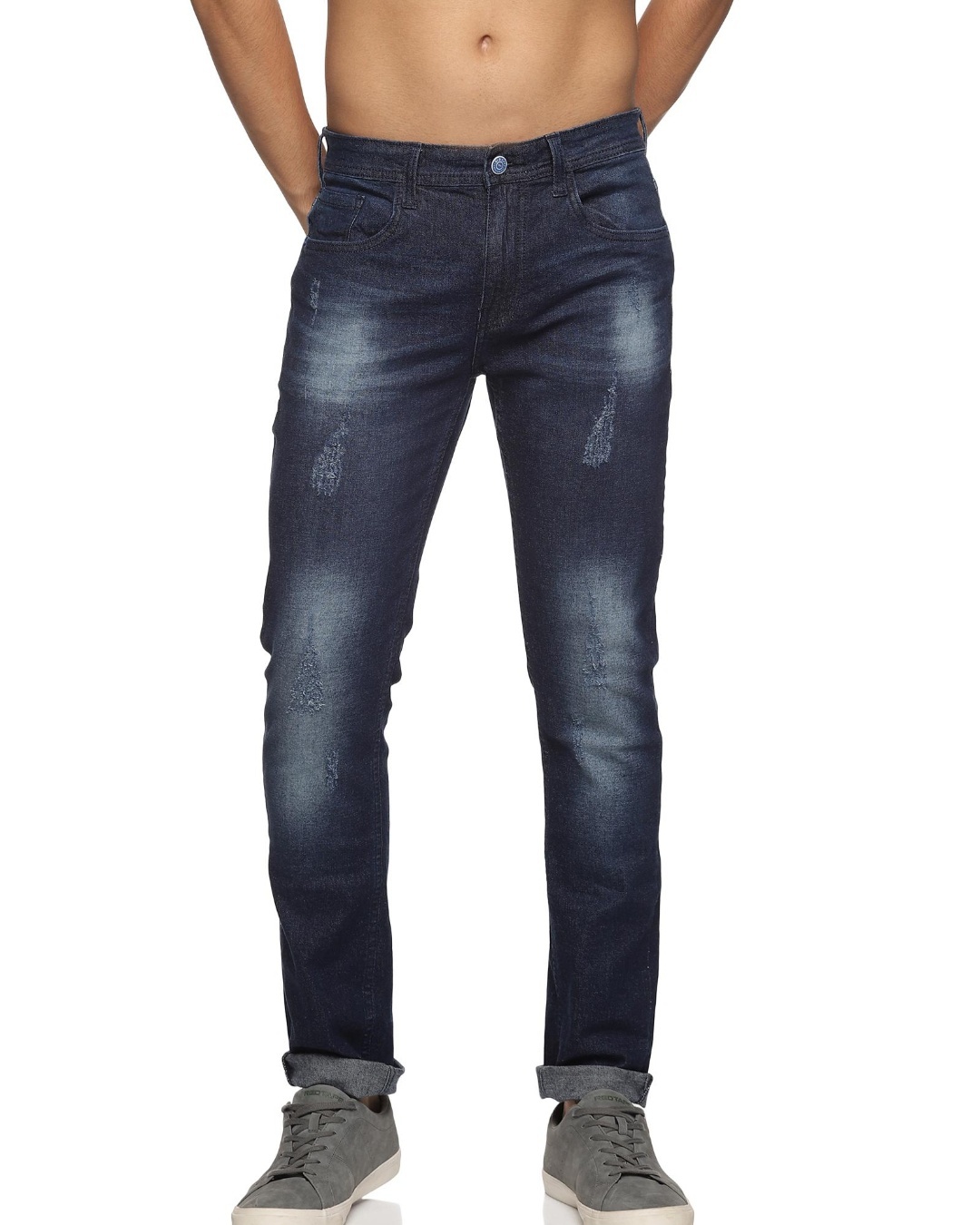 Men's Blue Washed Slim Fit Distressed Jeans