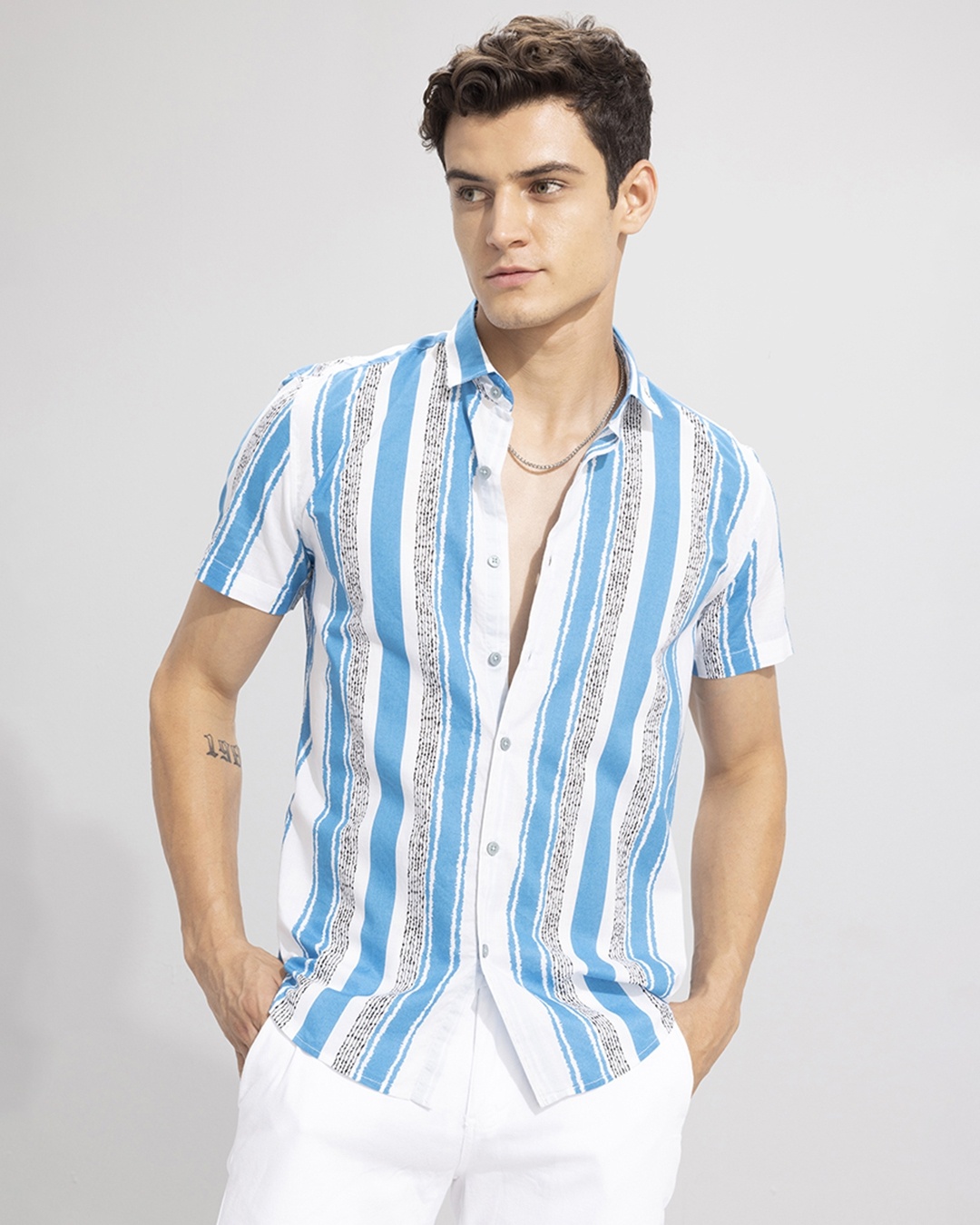 Men's Blue & White Striped Slim Fit Shirt