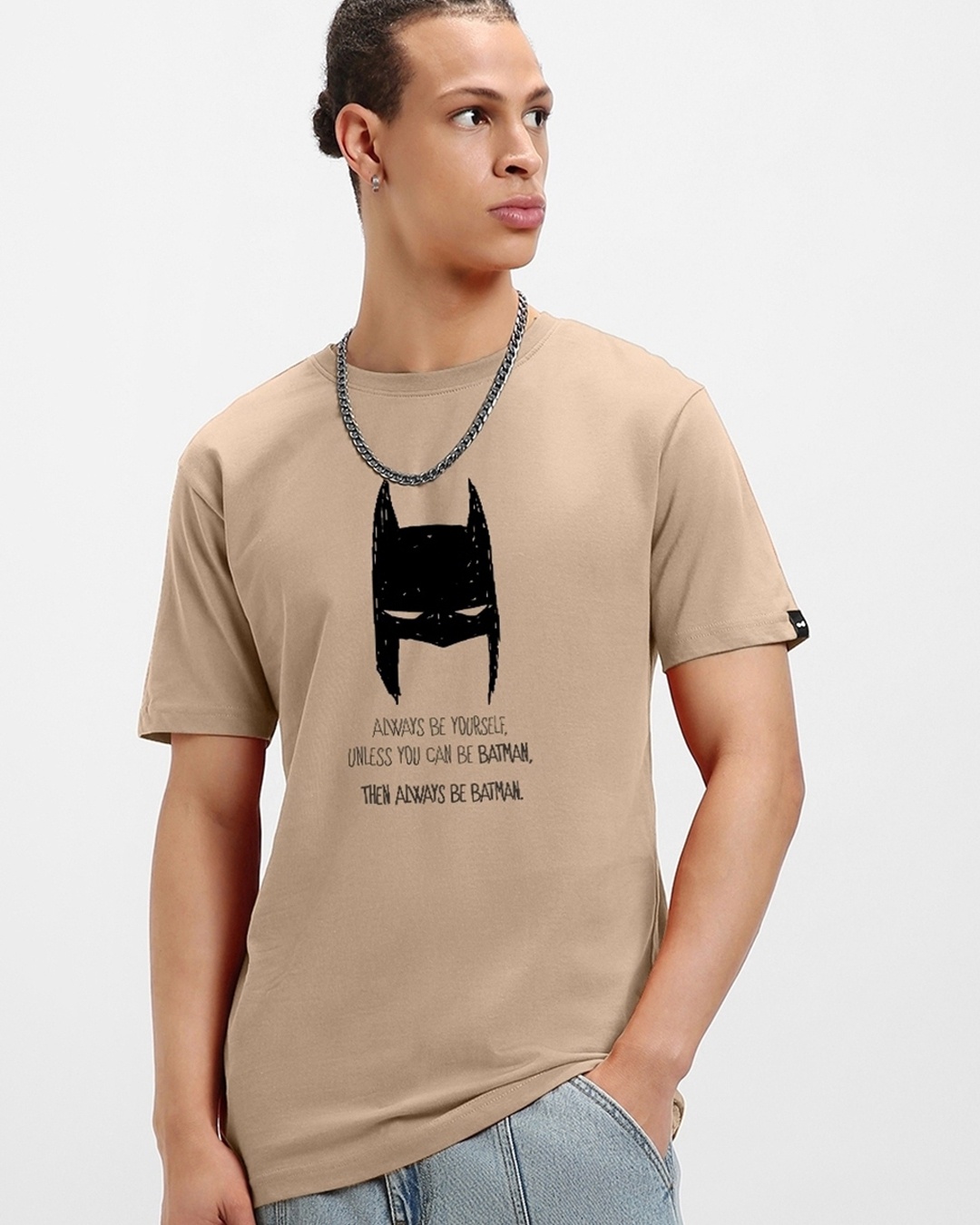 Men's Brown Be Batman Graphic Printed T-shirt