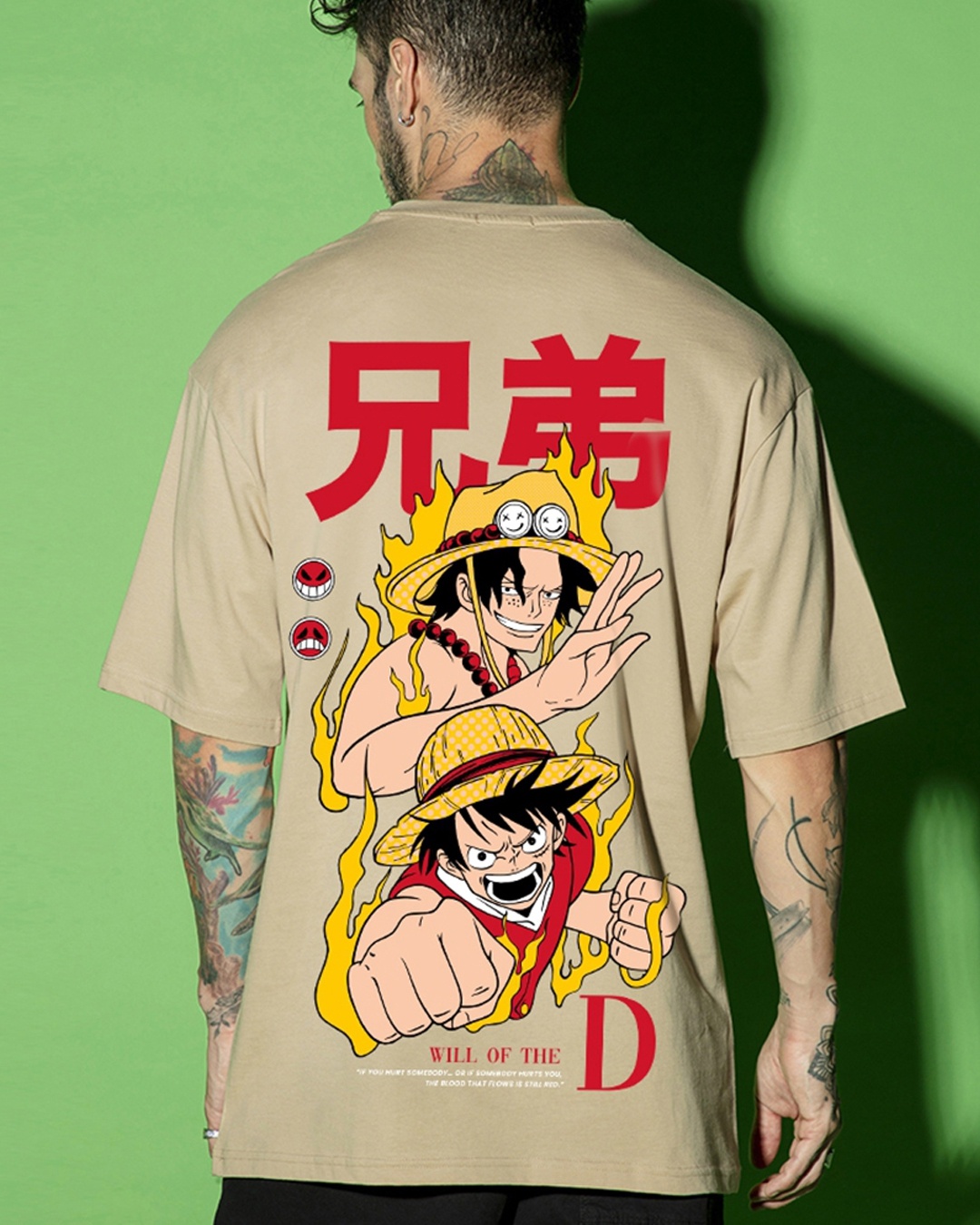 Men's Brown Brotherhood Graphic Printed Oversized T-shirt