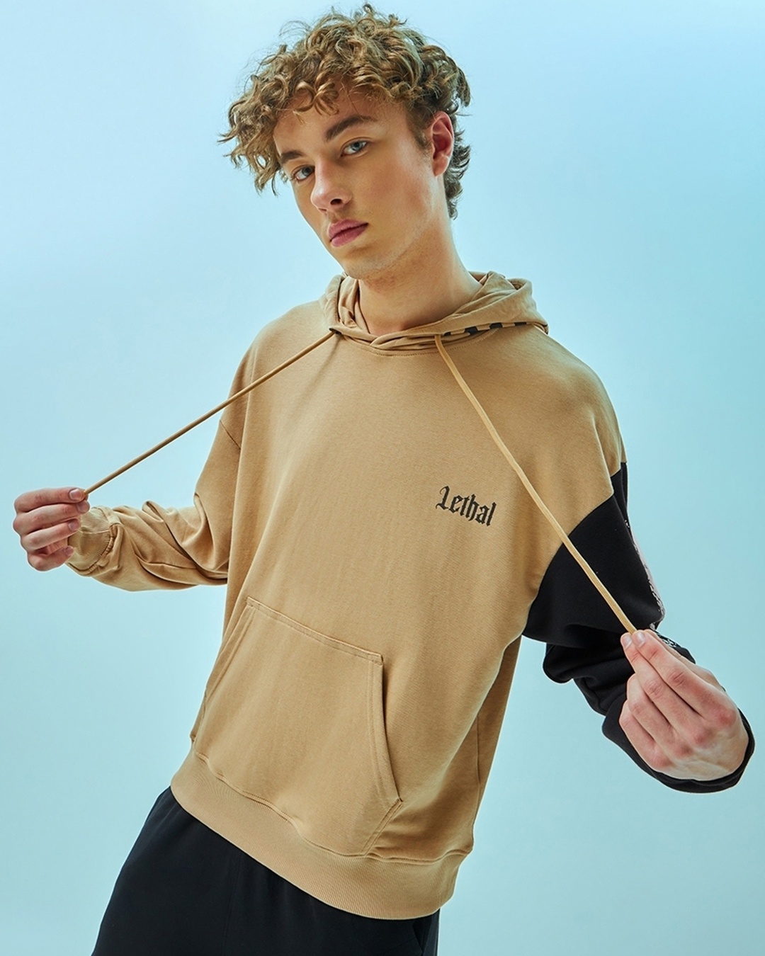 Men's Brown & Black Lethal Graphic Printed Oversized Hoodies