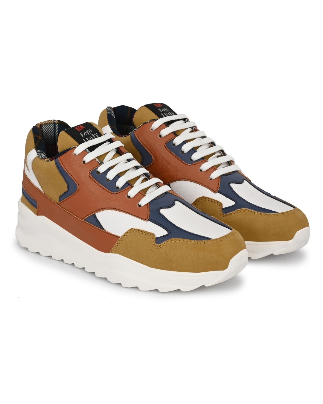 Men's Brown & Mustard Color Block Casual Shoes
