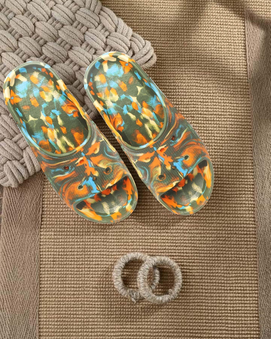 Men's Brown Printed Sliders