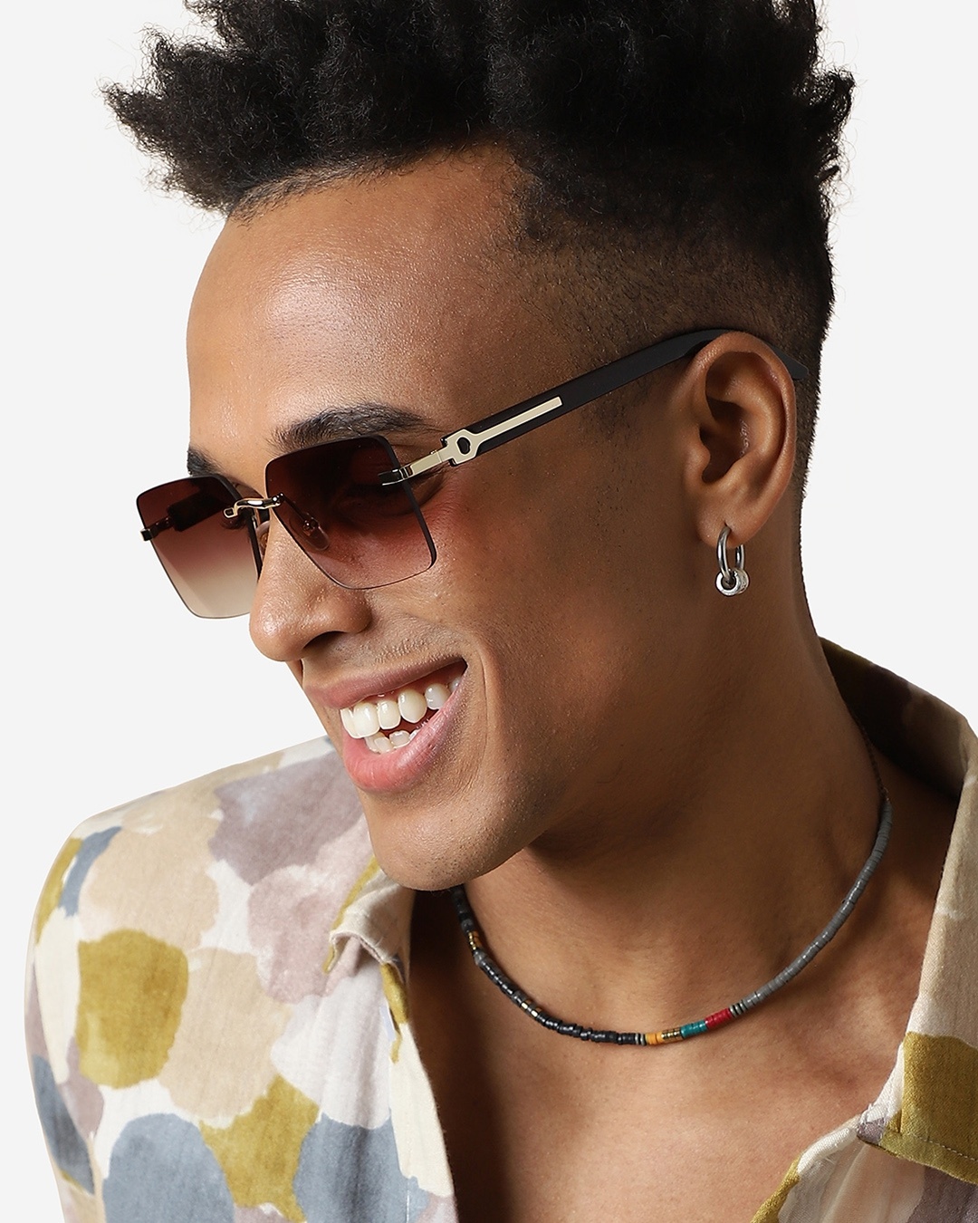 Men's Brown Rectangle Polarised Lens Gradient Sunglasses