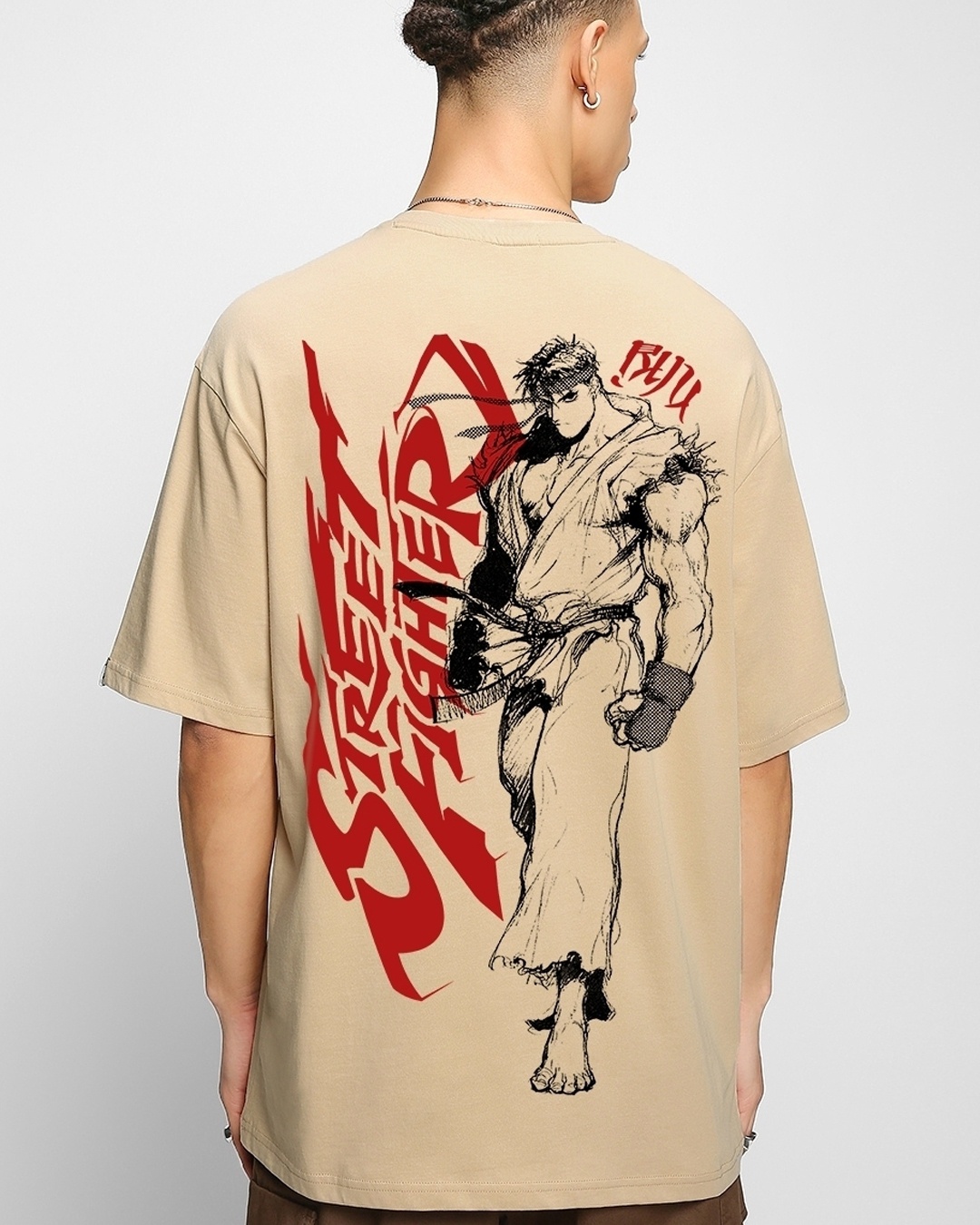 Men's Brown Ryu Street Fighter Graphic Printed Oversized T-shirt