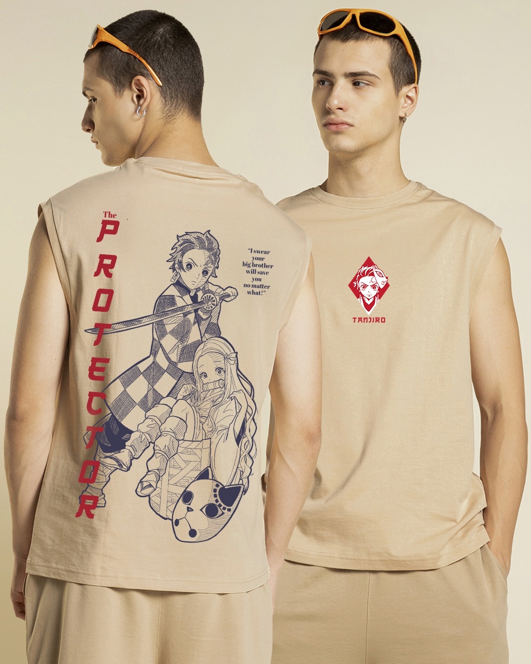 Men's Brown Tanjiro Kamado Graphic Printed Boxy Fit Vest