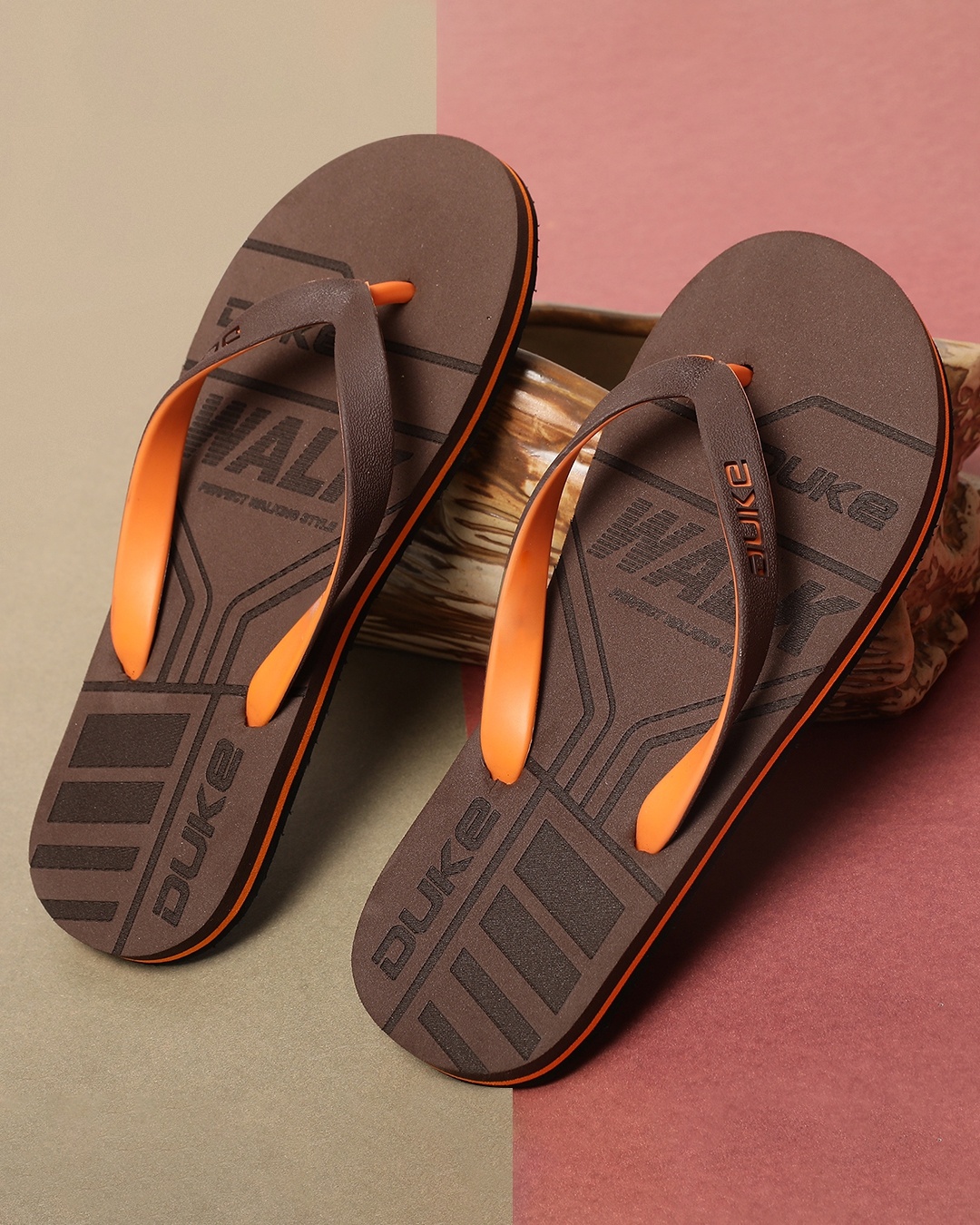 Men's Brown Typography Flip Flops