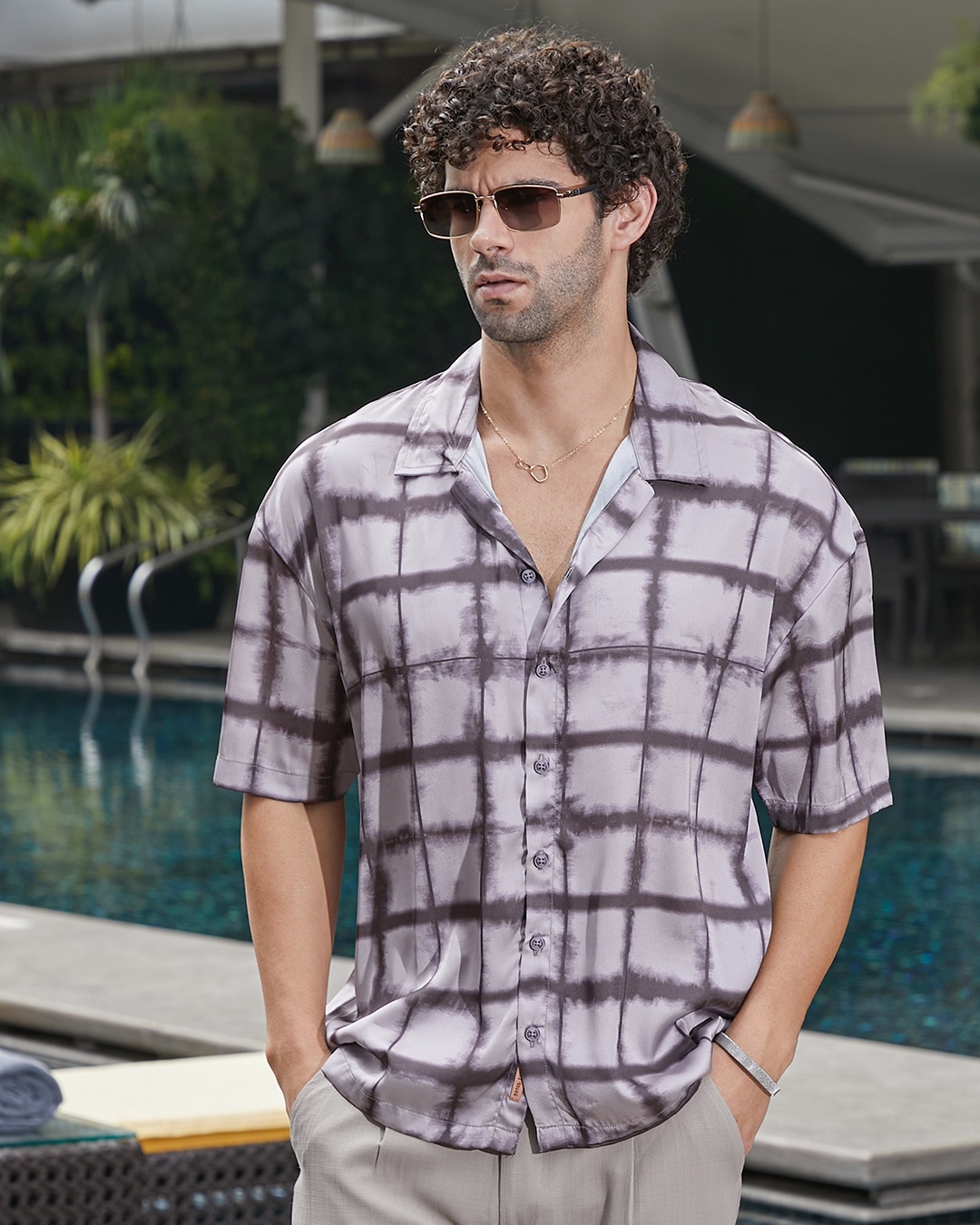 Men's Charcoal Grey Tie & Dye Oversized Shirt