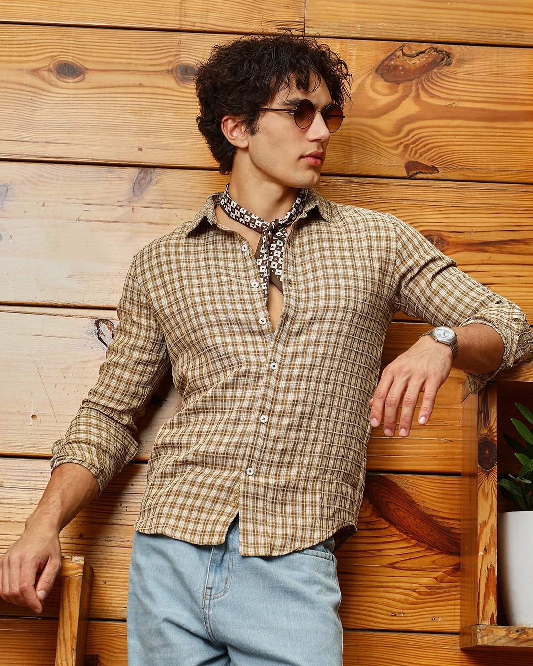 Men's Chocolate Brown Checked Shirt