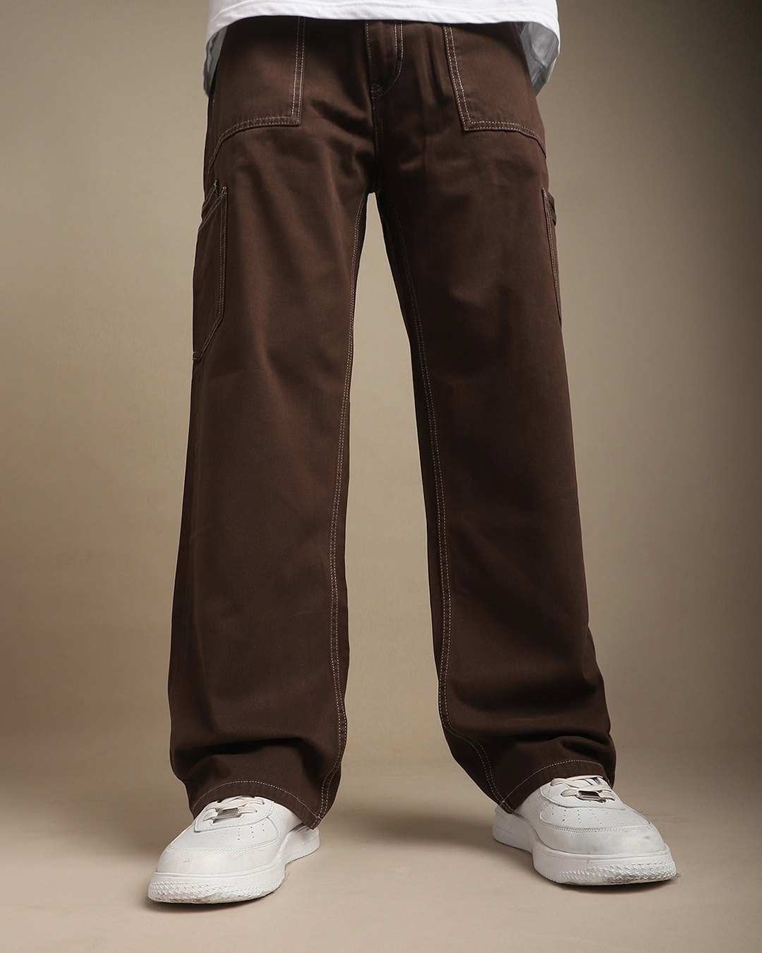 Men's Chocolate Brown Relaxed Fit Cargo Carpenter Pants