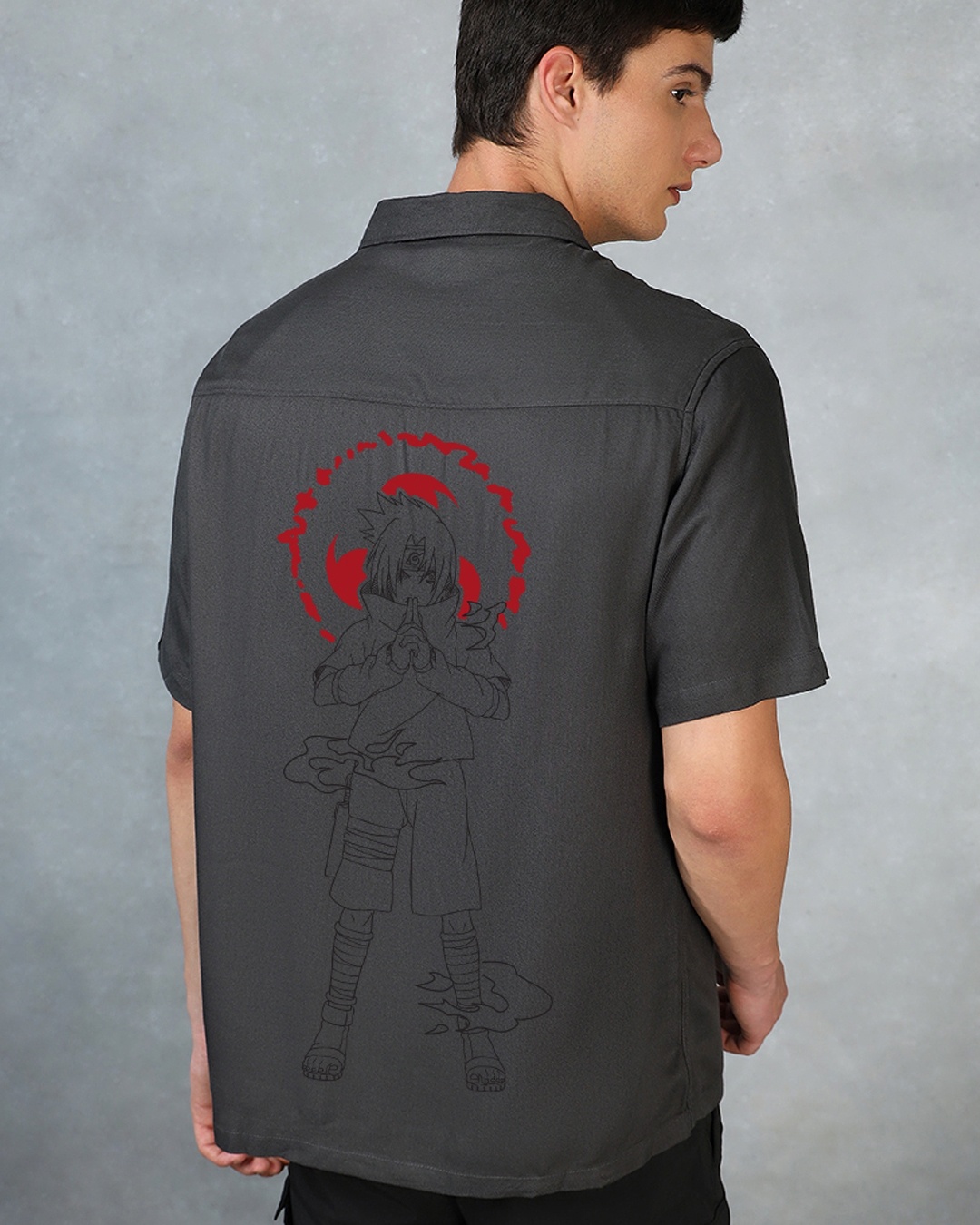 Men's Grey Cursed Sasuke Graphic Printed Oversized Shirt