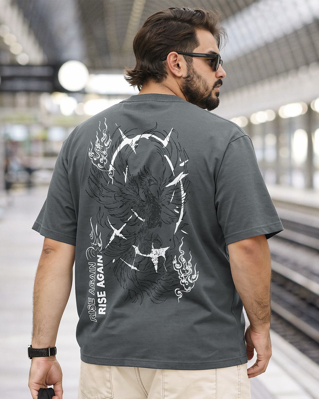 Men's Dark Shadow Grey Rise Again Graphic Printed Oversized Plus Size T-shirt