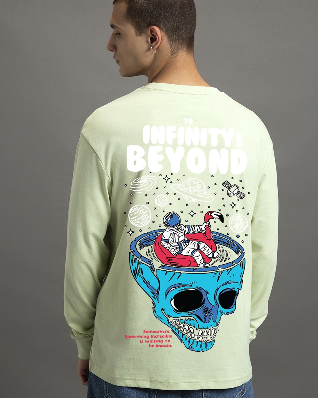 Men's Fog Green Infinity Space Graphic Printed Oversized T-shirt