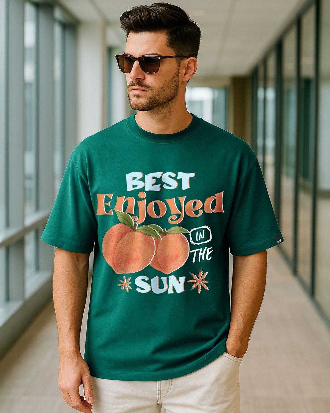 Men's Forest Green Peach Graphic Printed Oversized T-shirt