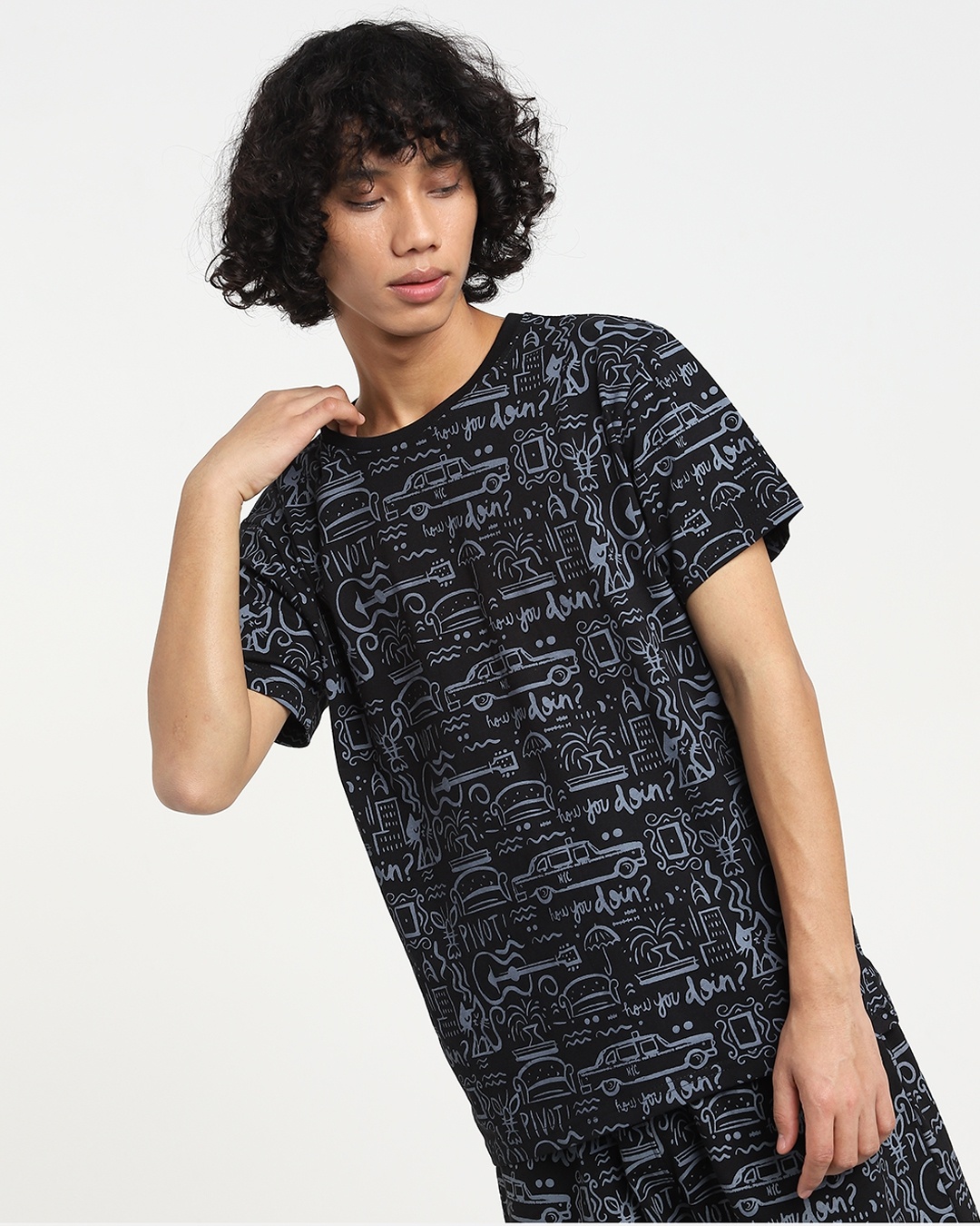 Men's Black Friends Doodle AOP T-shirt
