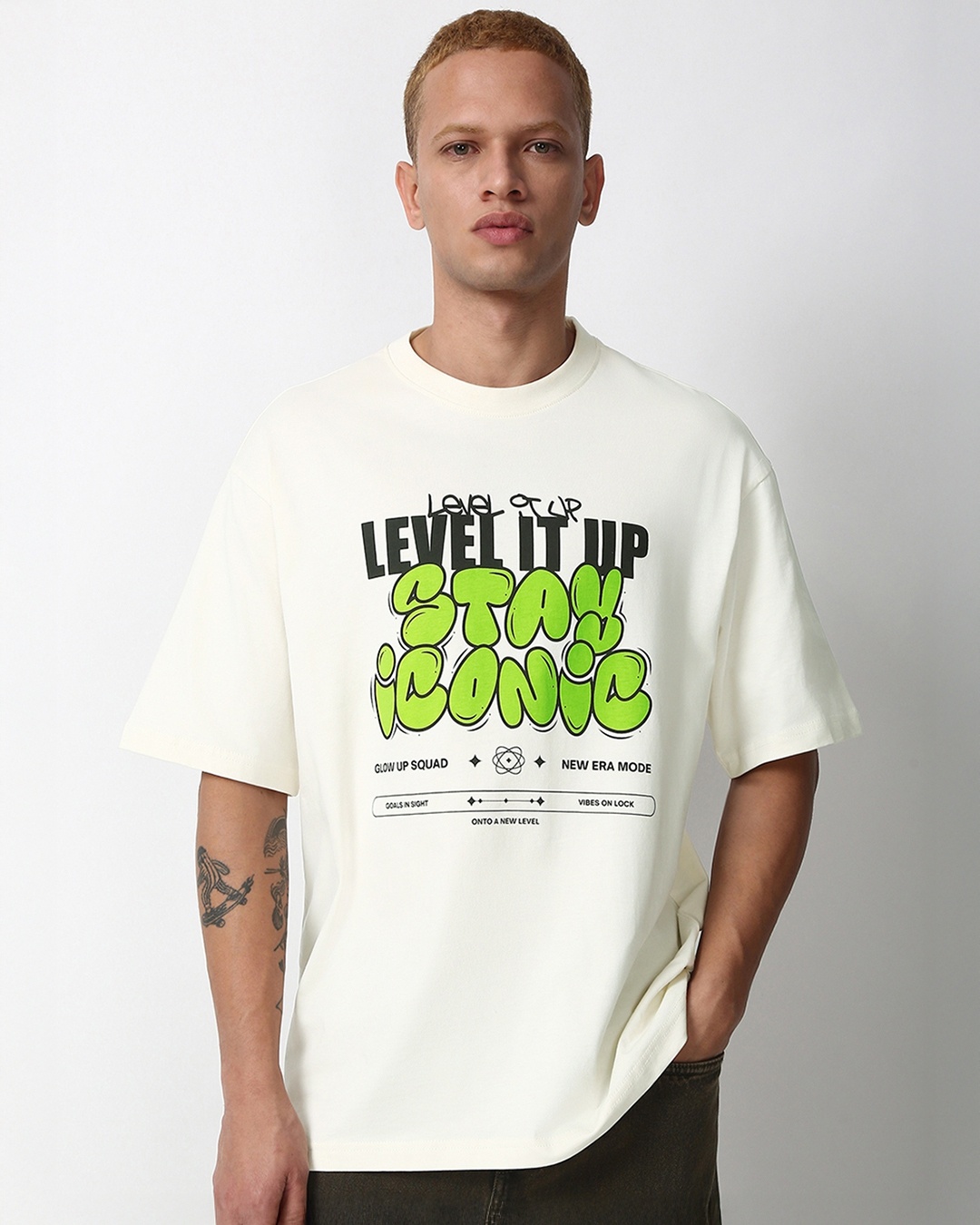 Men's Gardenia Level It Up Stay Iconic Typography Oversized T-shirt