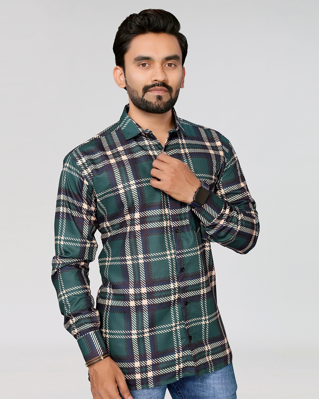 Men's Green & Beige Checked Relaxed Fit Shirt