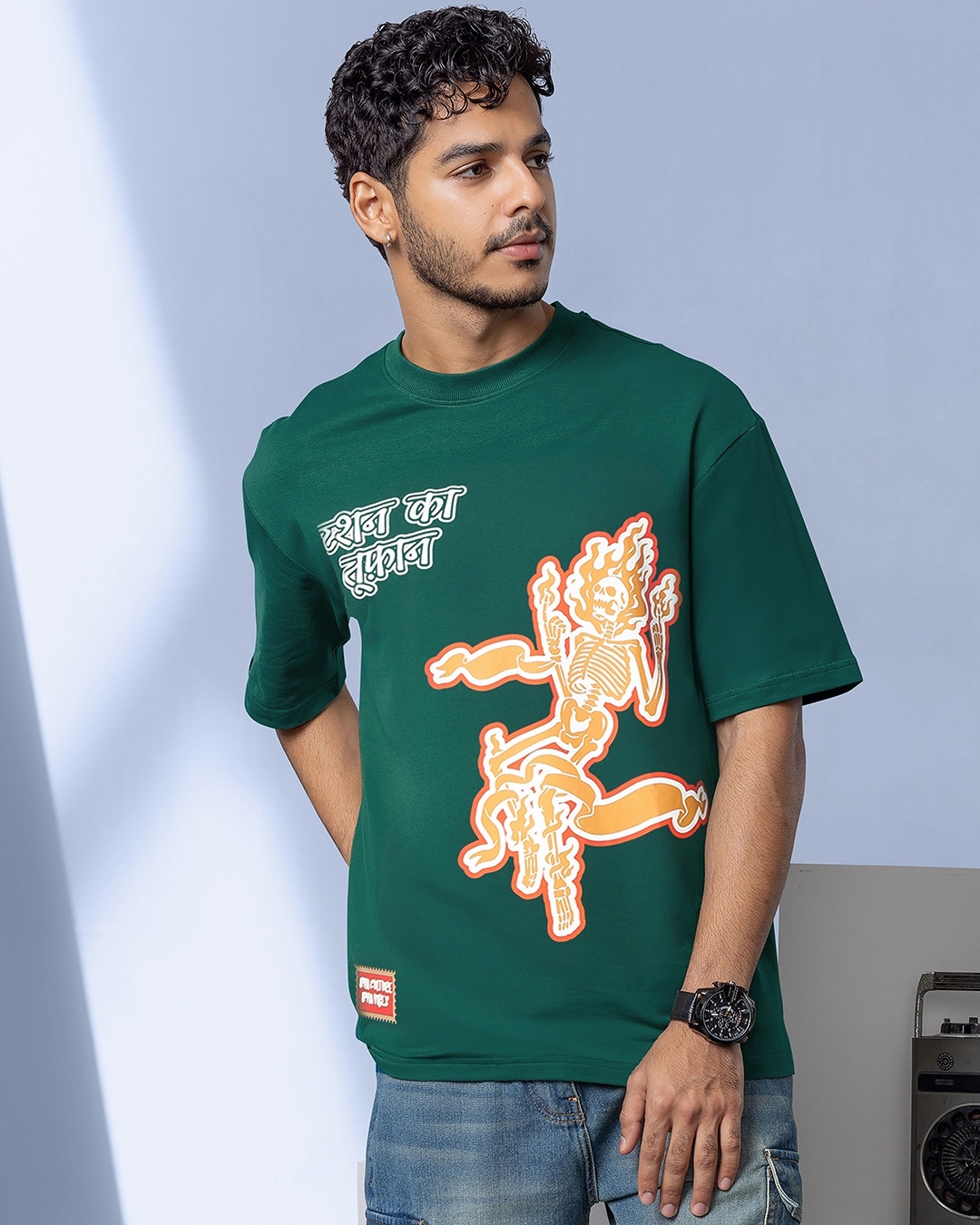 Men's Green Bhariaura Graphic Printed Oversized T-shirt