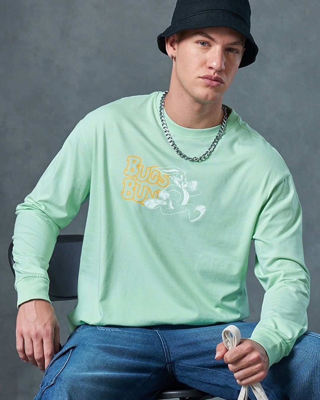 Men's Green Bunny Folks Graphic Printed Oversized T-shirt
