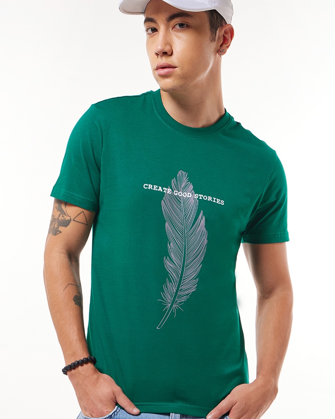Men's Green Create Good Stories Graphic Printed T-shirt