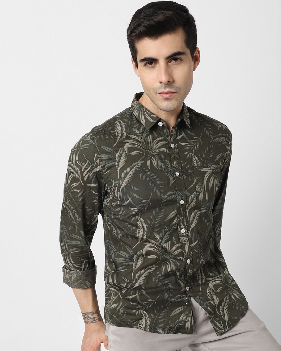 Men's Green Floral Printed Shirt