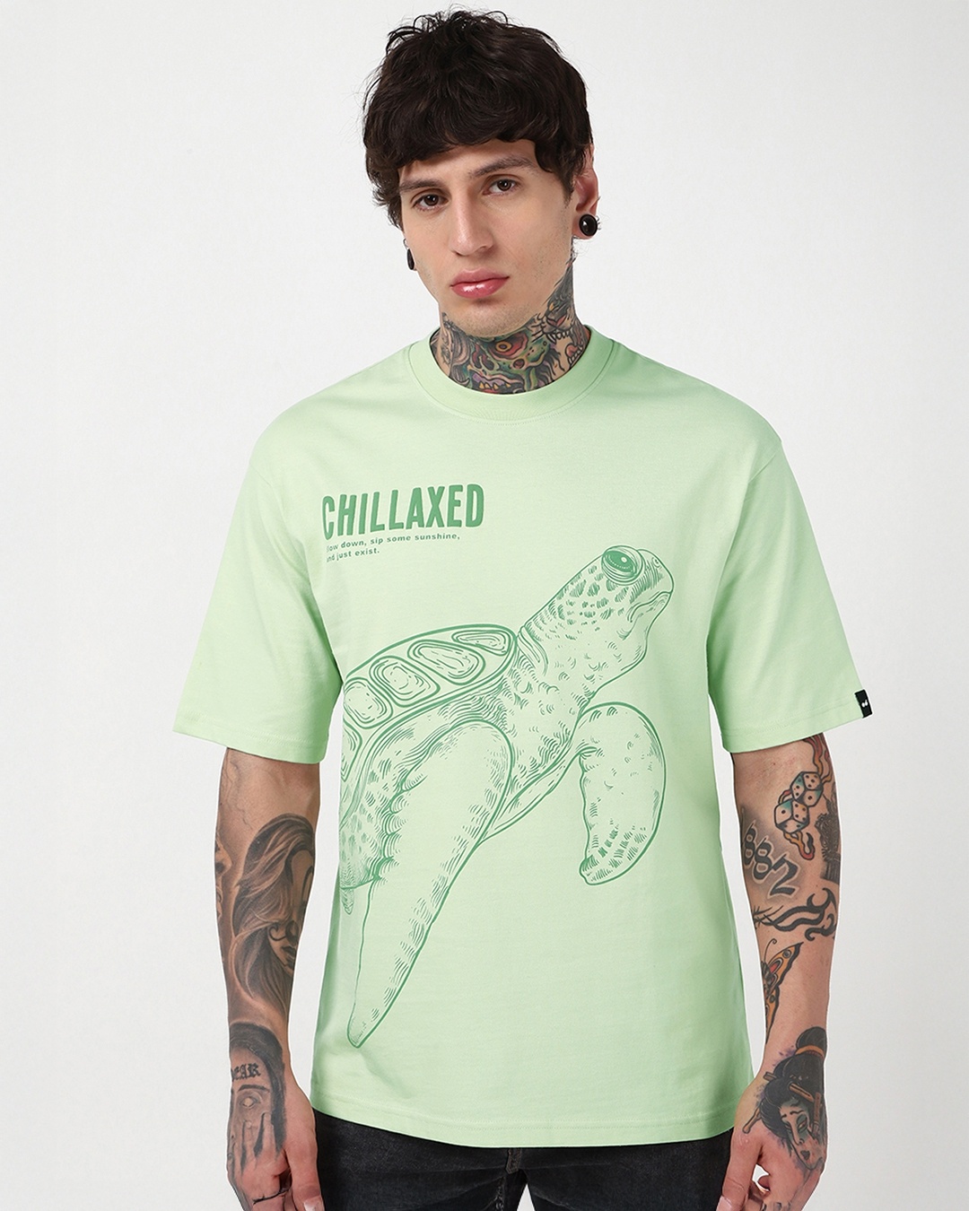 Men's Green Fog Green Turtle Graphic Printed Oversized T-shirt