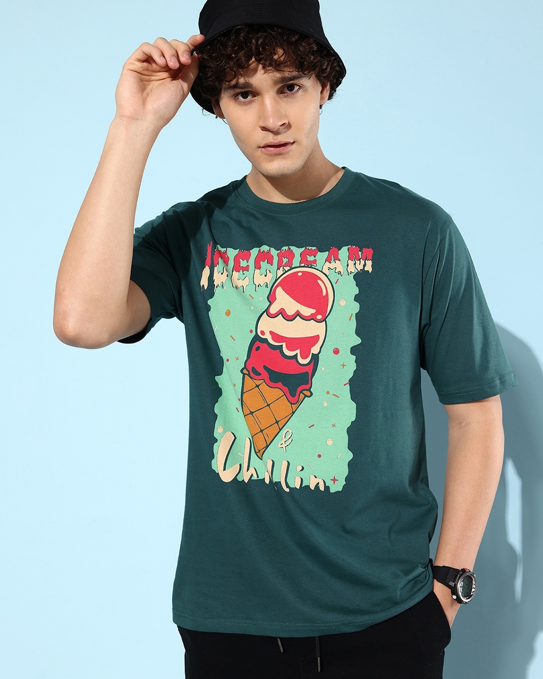 Men's Green Graphic Printed Oversized T-shirt
