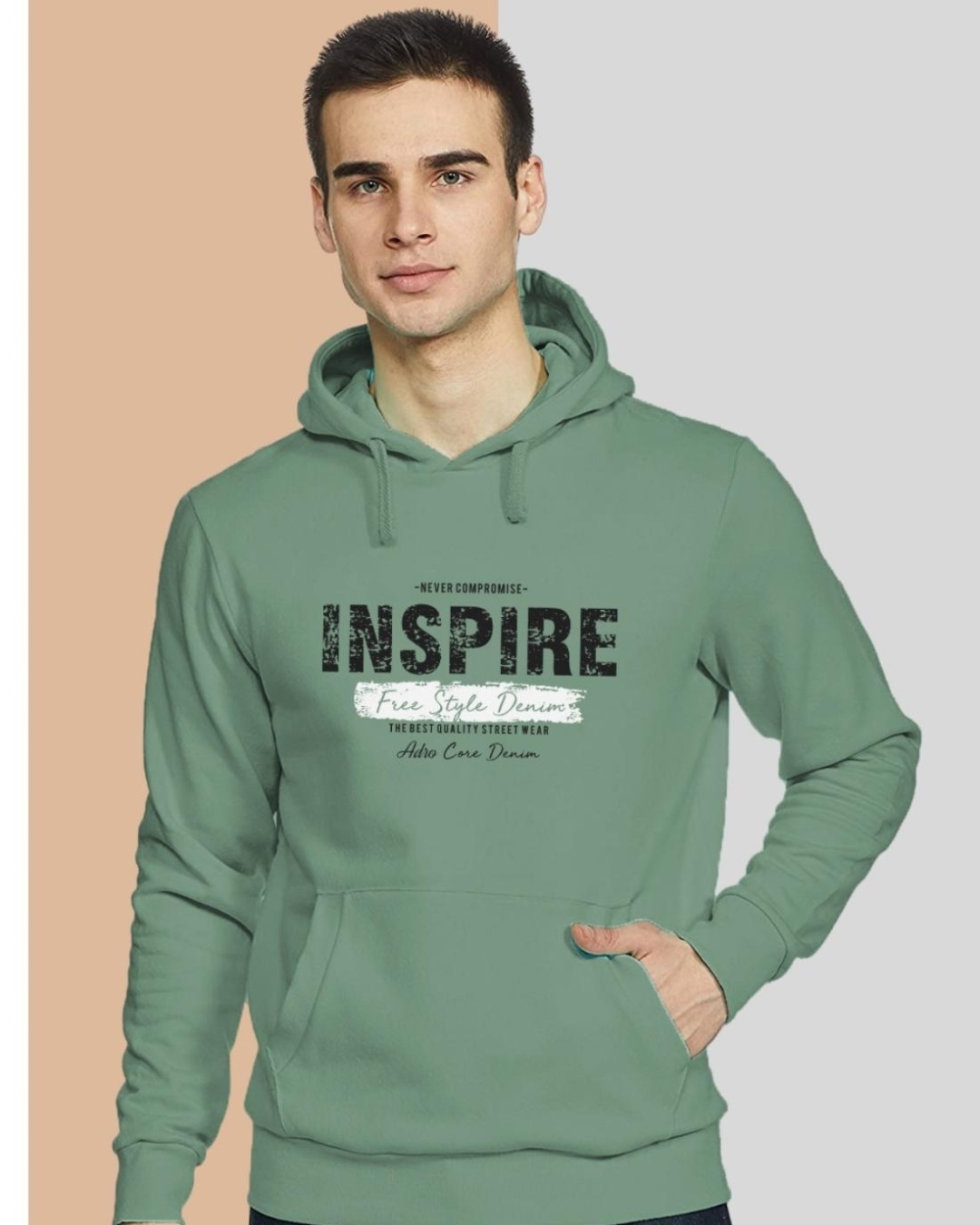 Men's Green Inspire Typography Hoodie