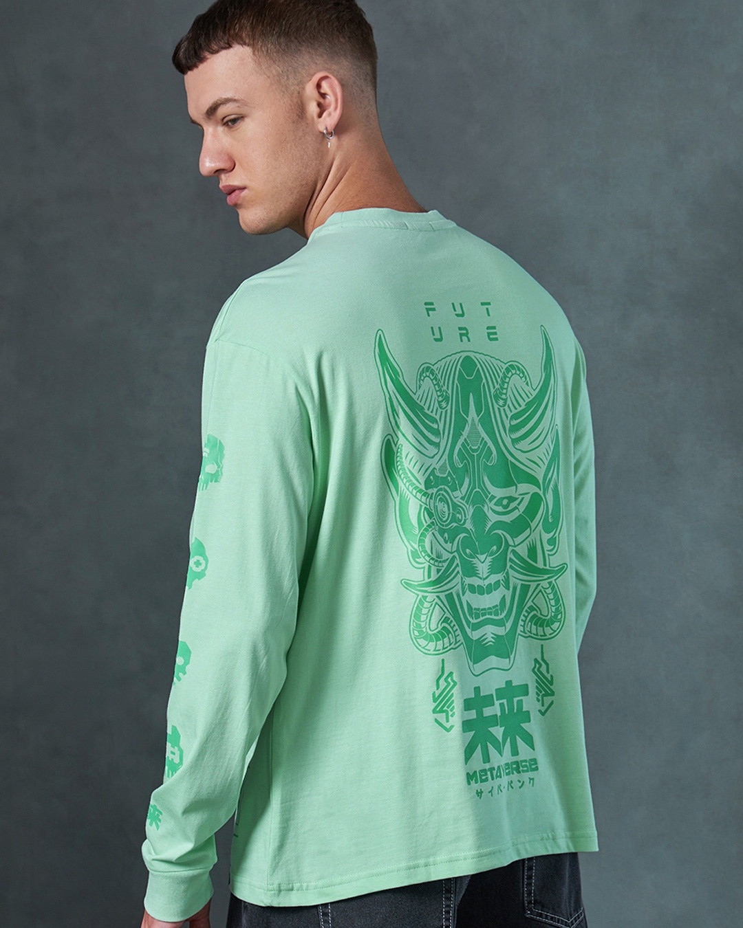 Men's Green Metaverse Graphic Printed Oversized T-shirt