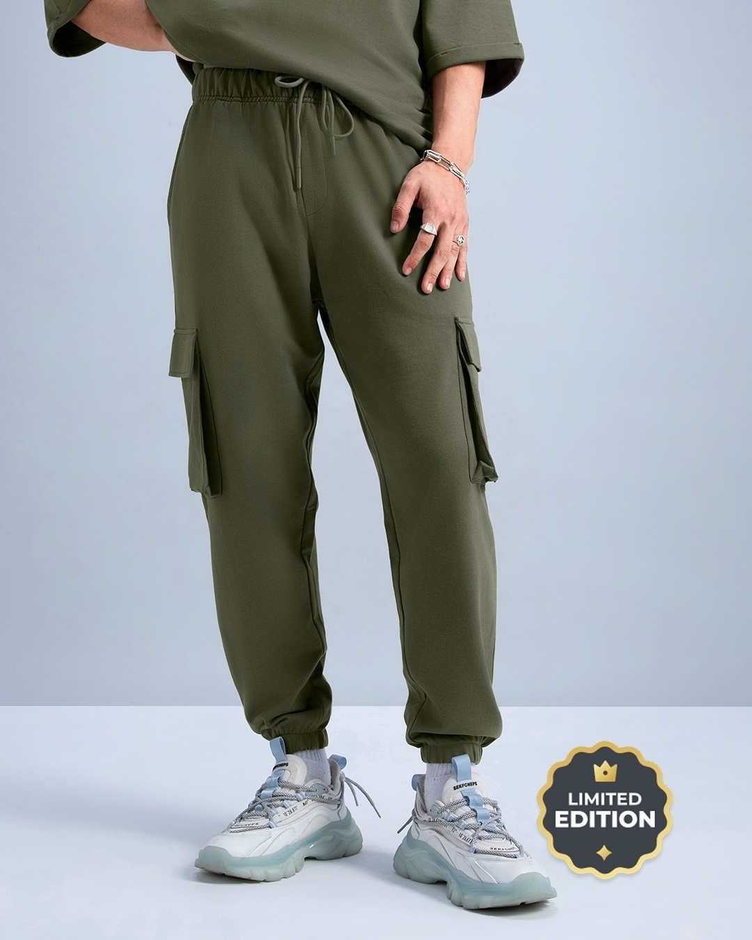 Men's Green Oversized Plus Size Cargo Joggers