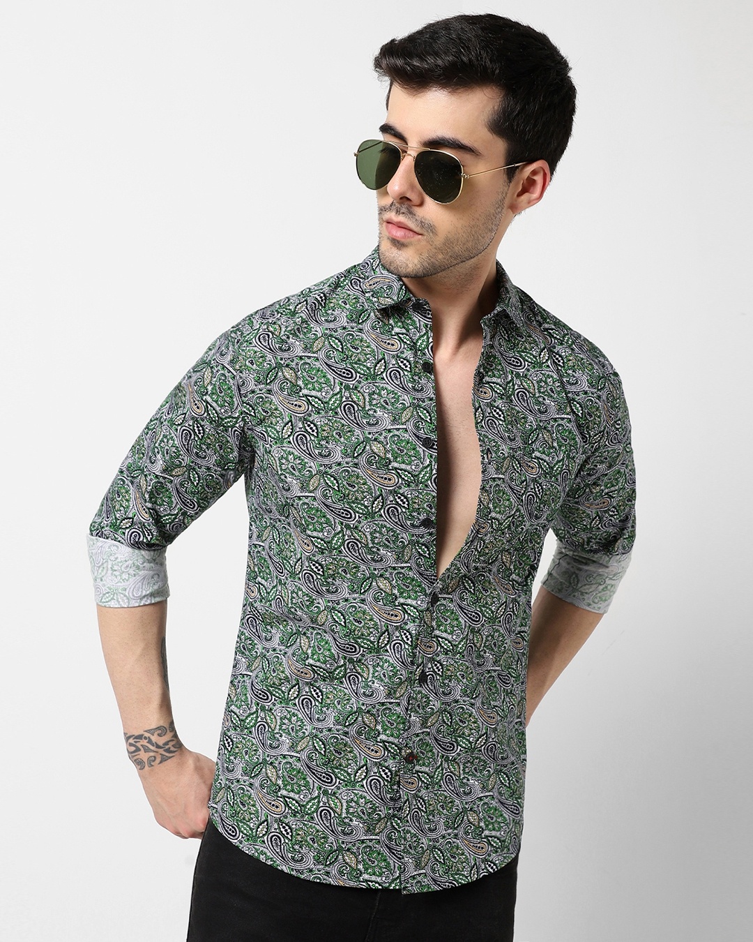 Men's Green Paisley Printed Shirt