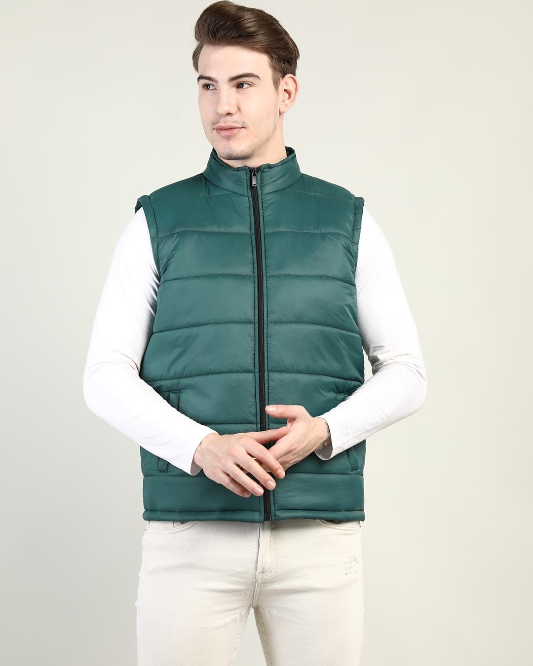 Men's Green Sleeveless Puffer Jacket