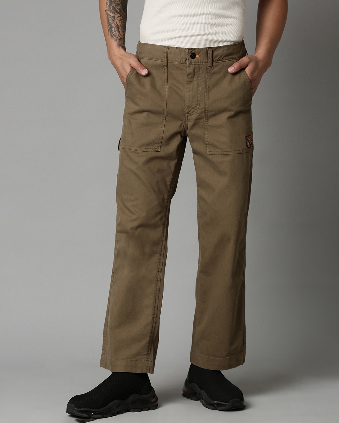 Men's Green Straight Fit Carpenter Pants